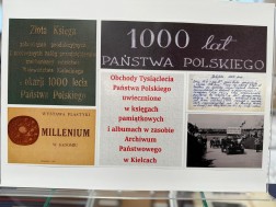 Spotkaniu ze źródłem archiwalnym towarzyszyła prezentacja okolicznościowej wystawy „Obchody Tysiąclecia Państwa Polskiego uwiecznione w księgach pamiątkowych i albumach znajdujących się w zasobach kieleckiego archiwum”.