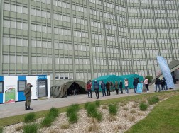 Przed mobilnym punktem szczepień, zlokalizowanym przed Świętokrzyskim Urzędem Wojewódzkim w Kielcach, ciągnie się ogromna kolejka tych, którzy oczekują na szczepienia. Akcja „Zaszczep się w majówkę” cieszyła się tak dużym zainteresowaniem, że postanowiono powtórzyć ją w ten weekend.