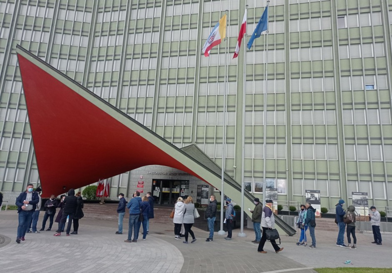 Kolejka do punktu jest długa na kilkaset metrów. Już we wczesnych godzinach porannych mnóstwo ludzi oczekiwało na swoją kolej przed Świętokrzyskim Urzędem Wojewódzkim.