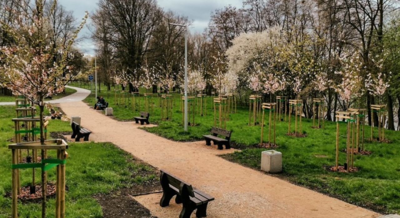 W Parku Kielczan, zlokalizowanym przy ulicy Klonowej nad zalewem, pojawiły się nie tylko dedykowane najmłodszym ozdobne wiśnie. Na nowej ścieżce spacerowej ustawiono również kosze oraz sześć ławek z recyklingu. Miejsce zmieniło się nie do poznania.