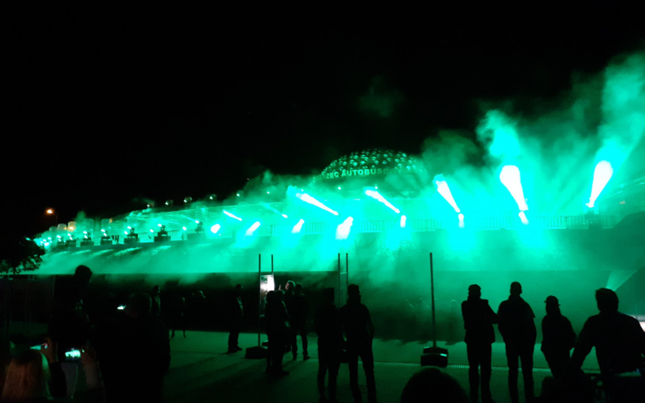 Największe tłumy zebrał jednak pokaz laserowy, opowiadający humorystyczną historię statku kosmicznego, który po międzygalaktycznych wojażach postanowił osiąść w Kielcach i stać się znanym wszystkim dworcem autobusowym. Zaskoczenie wywołała głównie narracja w wykonaniu Piotra Fronczewskiego jako sztucznej inteligencji kierującej „spodkiem”.