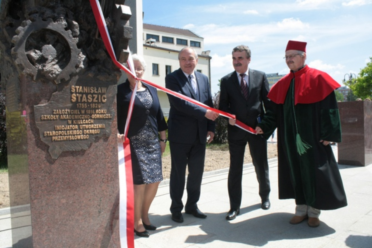 Na kampusie Politechniki Świętokrzyskiej ustawiony został pomnik Stanisława Staszica, twórcy Szkoły Akademiczno-Górniczej w Kielcach. Była to pierwsza uczelnia techniczna na ziemiach polskich. – Nasza Politechnika kontynuuje tradycje tamtej placówki założonej w 1816 roku – przemawiał profesor Stanisław Adamczak, rektor PŚK.