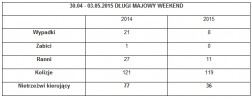 Poniżej znajduje się tabela z danymi dotyczącymi weekendu majowego.