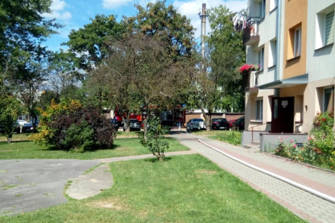 Równolegle strażacy prowadzili akcję gaśniczą: ugasili pożar zlokalizowany w kuchni, przewietrzyli mieszkanie i przeszukali je. Na miejscu działa pięć zastępów straży pożarnej.