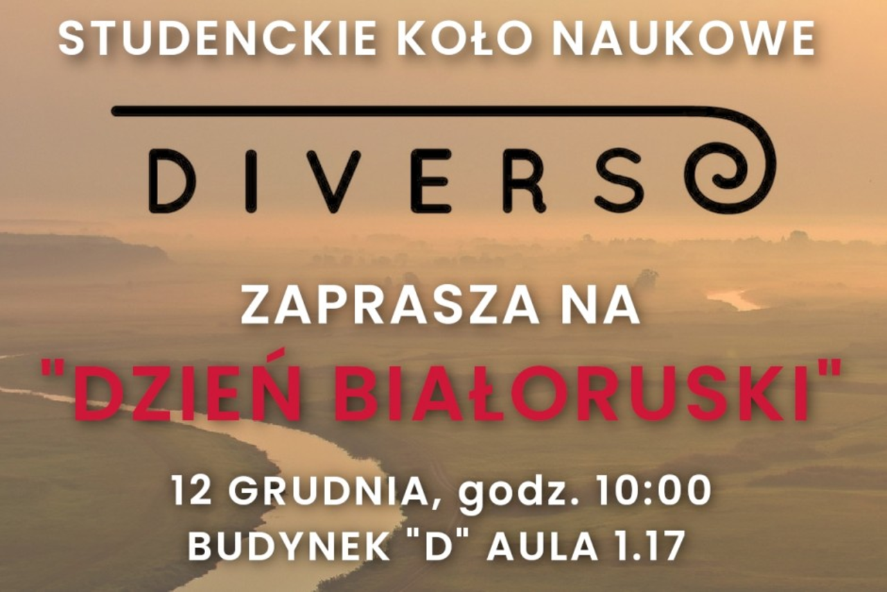 Studenckie Koło Naukowe DIVERSO, działające w ramach Instytutu Stosunków Międzynarodowych i Polityk Publicznych Uniwersytetu Jana Kochanowskiego w Kielcach, organizuje Dzień Białoruski. Odbędzie się on 12 grudnia.