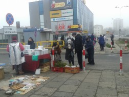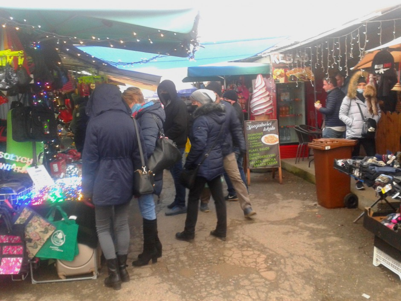 Jak zwykle, dużo kupujących można zauważyć przy stoiskach z ubraniami, szczególnie z odzieżą zimową. Na targu jest duży wybór płaszczy, szalików, kurtek, czapek i rękawiczek. Chętnie kupowane jest także ciepłe obuwie.