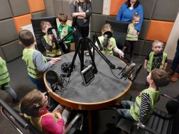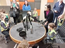 Przedszkolaki poznały naszą redakcję i dziennikarzy. Mogły nie tylko zobaczyć jak wygląda siedziba Radia eM i praca prezentera, ale też wziąć udział w rozmowie „na żywo”. Dla wszystkich był to radiowy debiut.