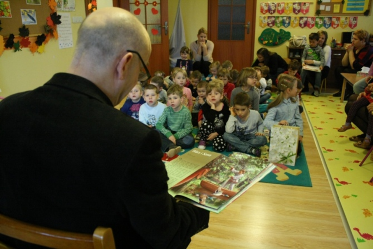Gościem spotkania z dziećmi w przedszkolu Mały Świat był Edward Janaszek, aktor Teatru im. Stefana Żeromskiego w Kielcach. Młodej publiczności przeczytał kilka znanych bajek i opowiedział o kulisach pracy na scenie. - Przede wszystkim było to spotkanie z żywym słowem. Oczywiście do teatru można przyjść na spektakl, ale takie indywidualne spotkanie jest formą bardzo ciekawą. W bezpośrednim kontakcie można przeczytać bajkę najmłodszej grupie odbiorców, skuteczniej do niej dotrzeć, poznać ich emocje i dowiedzieć się jak odbiera świat zewnętrzny. Według mnie to fantastyczna sprawa – ocenia Edward Janaszek.