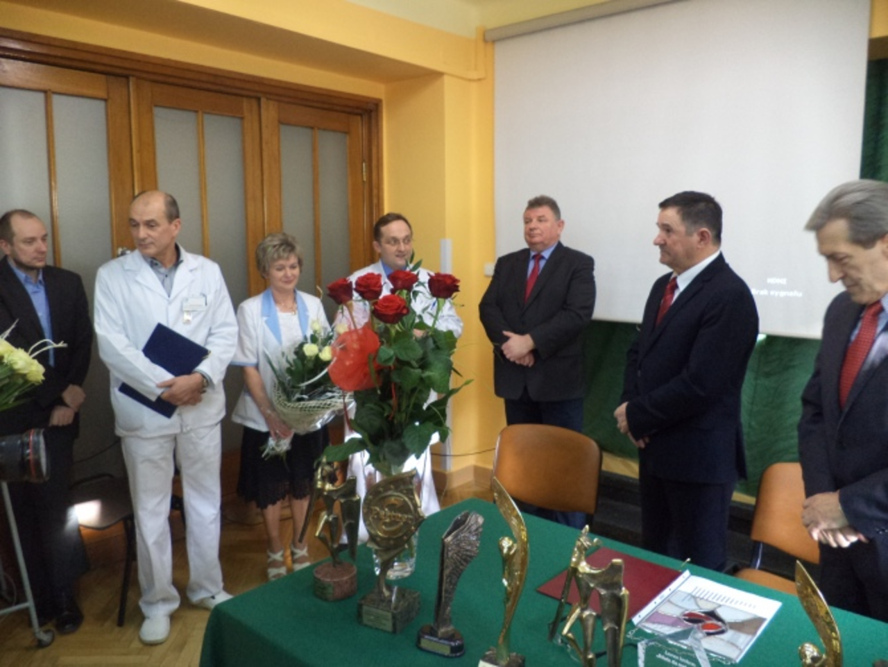 Piątkowa uroczystość była okazją do podwójnego pożegnania dyrektorów. Dyrektora Jana Gierady i wicedyrektora Bolesława Rylskiego. Obydwaj dziękowali ordynatorom, lekarzom, pielęgniarkom i wszystkim pracownikom. Personel zrewanżował się pamiątkowymi dyplomami, podziękowaniami i życzeniami dla obu włodarzy.