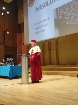 – W tym wyjątkowym wydarzeniu oprócz absolwentów i władz wydziału i uczelni są z nami przede wszystkim rodzice, dziadkowie i najbliżsi naszych studentów. To jest właśnie ich święto – podkreśla Przemysław Wolak, prodziekan kierunku lekarskiego na kieleckiej uczelni.