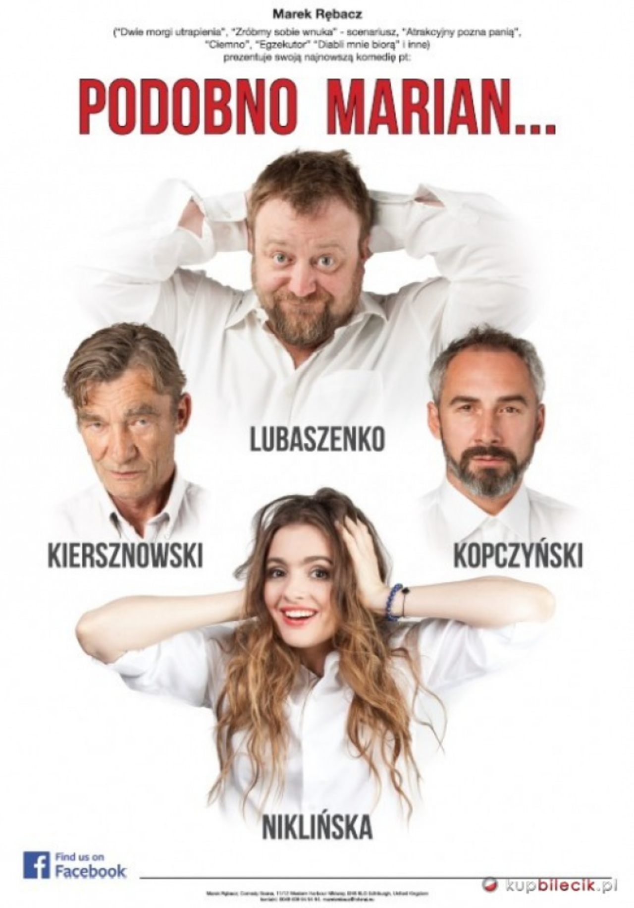 15 marca o godz.17 w Kieleckim Centrum Kultury wystawiony będzie spektakl pt. "Podobno Marian..." - czyli jak rozruszać upadający motelik w górach, na zadupiu, który autostrada minęła szerokim łukiem i do którego już nikt nie zagląda? Jak urządzić wigilię i radośnie przeżyć święta, gdy ma się ostatnie trzy jajka, kilka cukierków na choince, do sklepu jest piętnaście kilometrów (w dodatku na skróty), a za oknem zima stulecia? Kim są trzej tajemniczy, przemarznięci, mężczyźni, którzy w ów wigilijny wieczór, w śnieżną zawieruchę, pukają jednak do drzwi motelu w poszukiwaniu schronienia? Czy choć odrobinę podobni są do tych, których poszukują służby specjalne i o których nieustannie "trąbi" radio? Jeśli to oni, to jak ich obezwładnić, czyli upić, by ich zatrzymać i zgarnąć oferowaną przez służby nagrodę w wysokości półtora miliona złotych? No i na co, wreszcie, wydać te pieniądze..?
