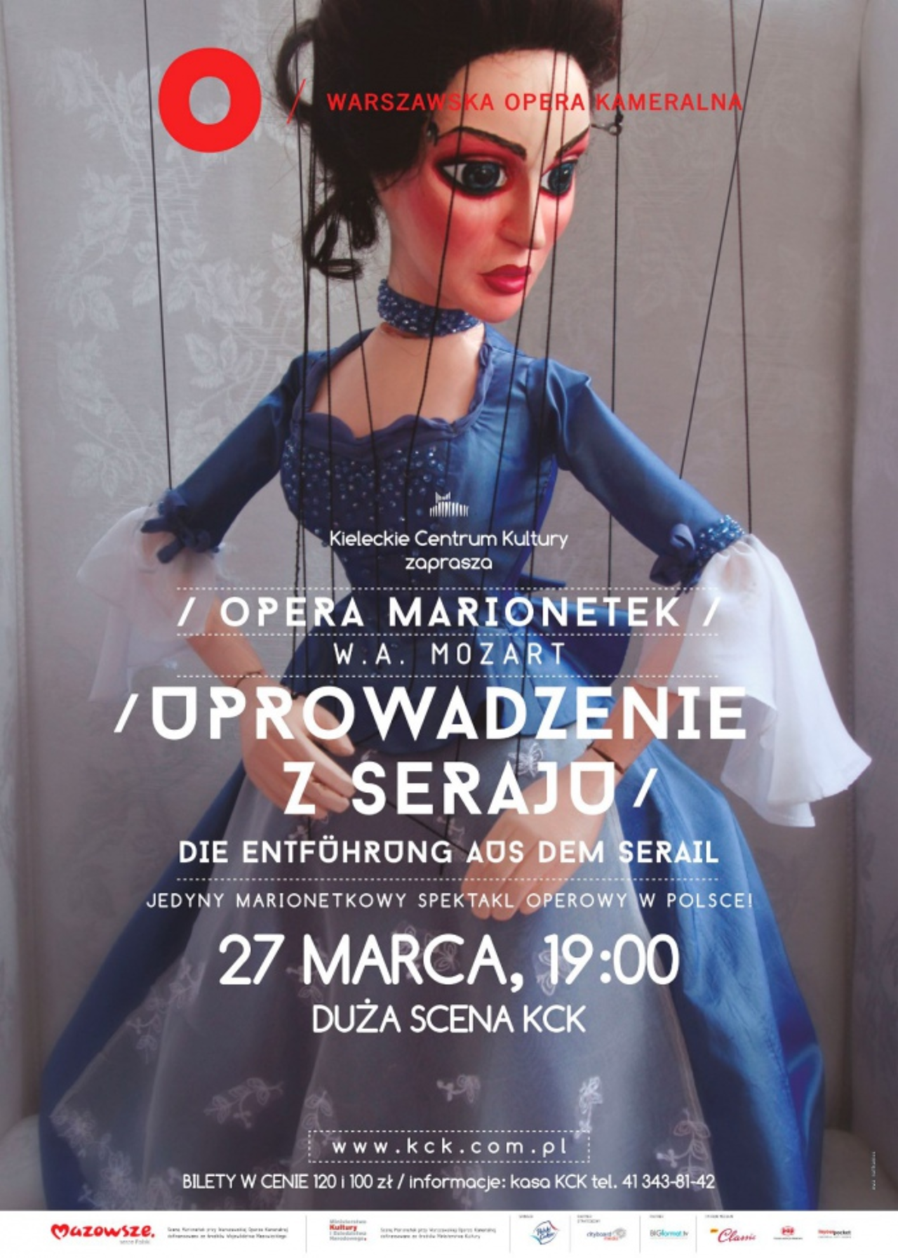 27 marca o godz. 19. w Kieleckim Centrum Kultury odbędzie się wyjątkowe widowisko - jedyny marionetkowy spektakl operowy w Polsce pt."Uprowadzenie z Seraju" W.A. Mozarta. Niezwykłe, barwne widowisko, przywracające dawną tradycję Teatru Opery Marionetek, który robił prawdziwą furorę w Europie od XVII wieku. Obwożono go nie tylko po Europie, ale i poza nasz kontynent. Swego czasu, kiedy dzieła Haydna i Mozarta wchodziły do repertuaru teatrów operowych, teatr marionetek też je od razu przejmował i prezentował, osiągając przy tym niezwykły kunszt w łączeniu muzyki, śpiewu i gry aktorskiej lalek.