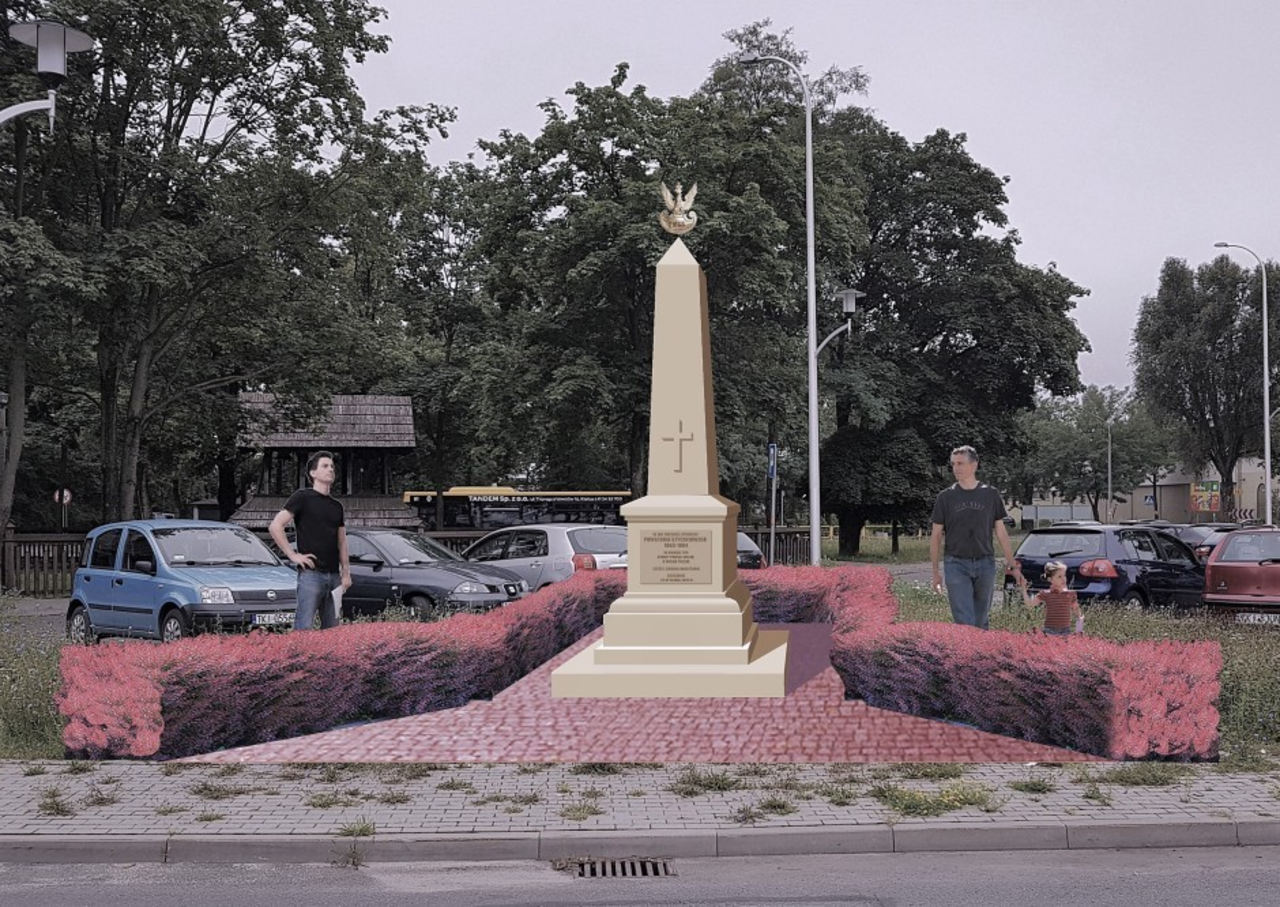 Pomnik będzie wysoki na trzy i pół metra i zostanie wykonany z litego kamienia pińczowskiego. Teren wokół w zamyśle miałby zostać obsadzony czerwonym berberysem.