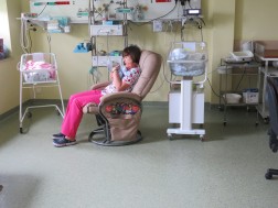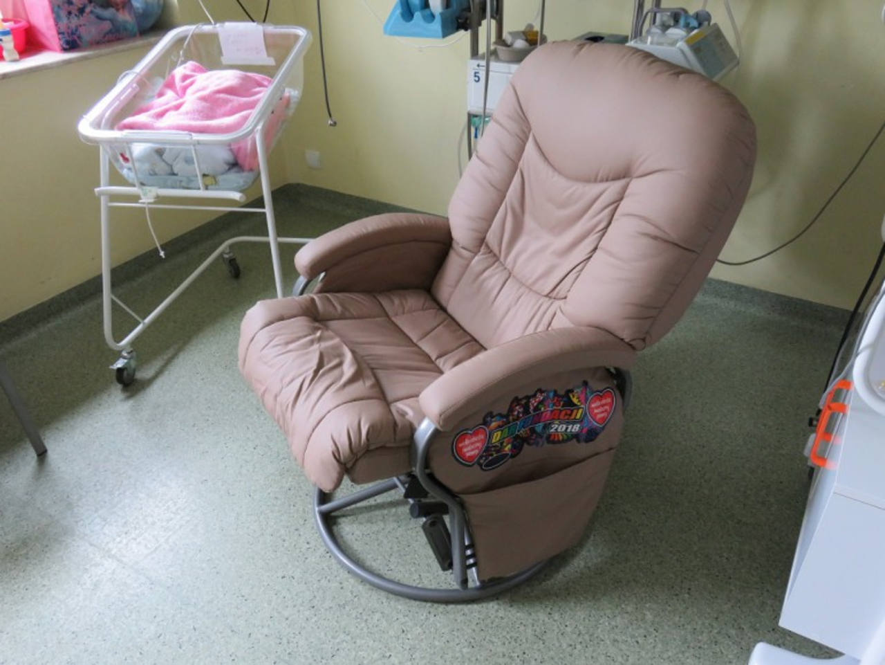 Noworodki są kangurowane w trakcie pobytu w szpitalu kilkakrotnie w ciągu doby. Takie postępowanie jest zalecane rodzicom także po wyjściu ze szpitala. Fotele przekazała Fundacja Wielkiej Orkiestry Świątecznej Pomocy.