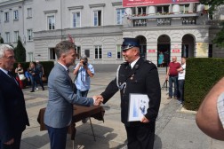 – Na dzisiejszej uroczystości został przekazany ciężki sprzęt marki Lukas. W skład zestawu wchodzą takie przedmioty jak nowoczesna pompa, nożyce o sile cięcia 110 ton, rozpieraki czy też zestaw końcówek do narzędzi. Mamy nadzieje, że będziemy używać tego sprzętu tylko na ćwiczeniach, ale jeśli zajdzie potrzeba to na pewno będziemy przygotowani aby użyć go w celu ratowania życia – mówi Piotr Biegański, prezes Ochotniczej Straży Pożarnej Kielce-Niewachlów.