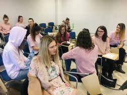 – Kolor różowy jest barwą przewodnią akcji, dlatego też zdecydowaliśmy się założyć takie ubrania i solidaryzować się z chorymi kobietami. Na korytarzach co chwilę przewijają się różowe elementy, albo przynajmniej różowe wstążeczki na ubraniach. Osoby, które nie widziały dlaczego jesteśmy tak ubrani, mogły się dowiedzieć o akcji, a tym samym o profilaktyce. Musimy mówić o tym problemie, to nie może być temat tabu – dodaje Kamila Hałownia.