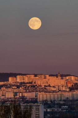 Księżyc znalazł się dzisiaj w pełni o 14:20, a tuż po godz. 15:40 pojawił się na horyzoncie nad Kielcami. O godz. 23:30, osiągnie na swojej orbicie perygeum, czyli punkt położony najbliżej Ziemi.