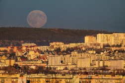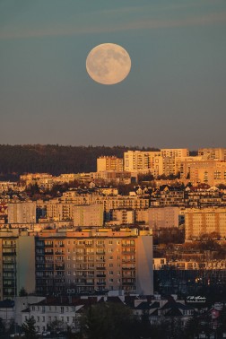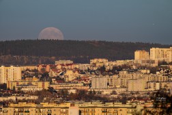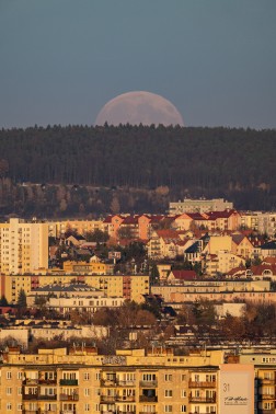 Początek superpełni księżyca można było obserwować w Kielcach np. ze wzgórza Karczówka. Z tej perspektywy księżyc pojawił się nad podkieleckimi lasami i osiedlami z północy miasta: Uroczysko, Na Stoku, Świętokrzyskie.