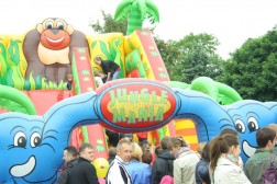 1 czerwca na kieleckiej „Sienkiewce” można było zobaczyć tłumy roześmianych dzieciaków, które mimo złej pogody brały udział w przygotowanych dla nich zabawach. O godz. 10 na Placu Artystów rozpoczął się „Wielki Festyn z Okazji Dnia Dziecka”. Dla najmłodszych przygotowano gry i zabawy prowadzone przez wolontariuszy, dmuchaną zjeżdżalnię, a w przerwach czas umilały występy artystyczne. Największym zainteresowaniem cieszyły się pokazy tresury psów policyjnych oraz malowanie twarzy. Co chwilę można było zobaczyć młodych kielczan „zamienionych” w tygrysa lub motyla. Po zabawach na dzieci czekał słodki poczęstunek. Festyn został zorganizowany przez kielecką Caritas oraz Fundację Vive Serce Dzieciom.