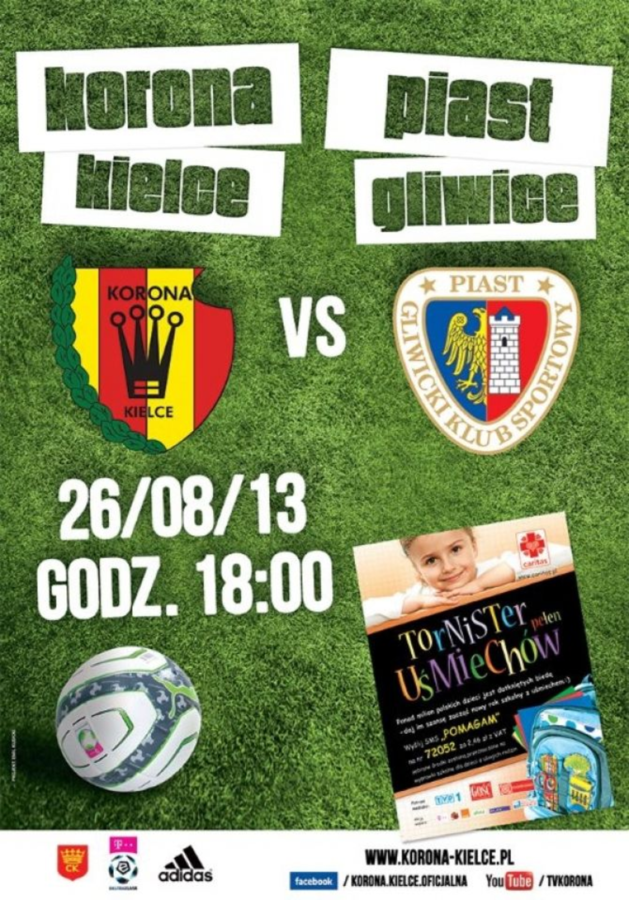 Caritas Diecezji Kieleckiej oraz Korona Kielce dn. 26 sierpnia b.r. przed meczem Korony z Piastem Gliwice organizują zbiórkę przyborów szkolnych w ramach akcji „Tornister pełen uśmiechów”.