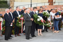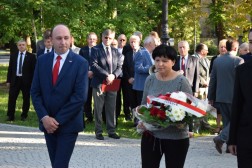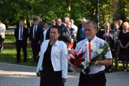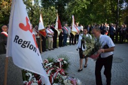 Po nabożeństwie uczestnicy uroczystości udali się przed pomnik bł. ks. Jerzego Popiełuszki patrona Solidarności, gdzie złożyli kwiaty.