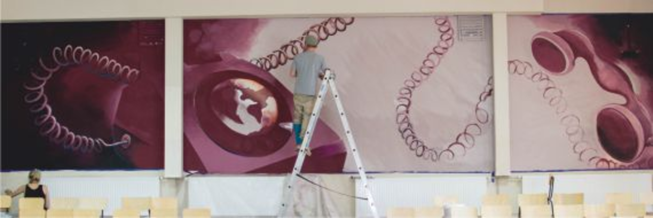 Mural, który jest materialnym efektem projektu, naniesiony został na jednej ze ścian auli głównej I LO w Kielcach. – Przestawia on stary telefon, gdzie tarczę z cyframi zastąpiła kula ziemska otoczona znanymi zabytkami. To pokazuje, że dziś łatwo jest poruszać się pomiędzy różnymi miastami czy krajami – wyjaśnia Sandra Stępień, współautorka obrazu i uczennica kieleckiego „Żeroma”.