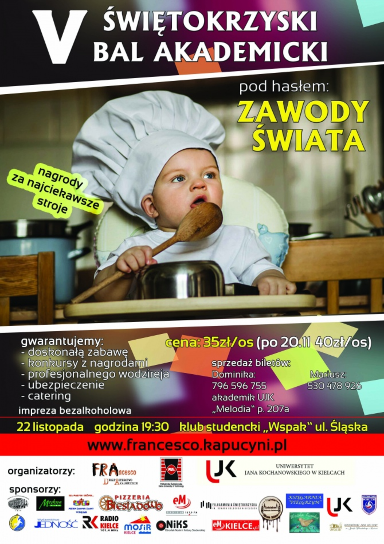 Po raz piąty Duszpasterstwo Akademickie FRAncseco, Politechnika Świętokrzyska oraz Uniwersytet Jana Kochanowskiego organizują Świętokrzyski Bal Akademicki. To okazja do promocji wyższych wartości a także zabawy bez alkoholu.