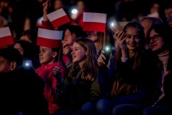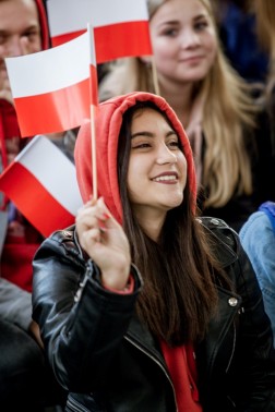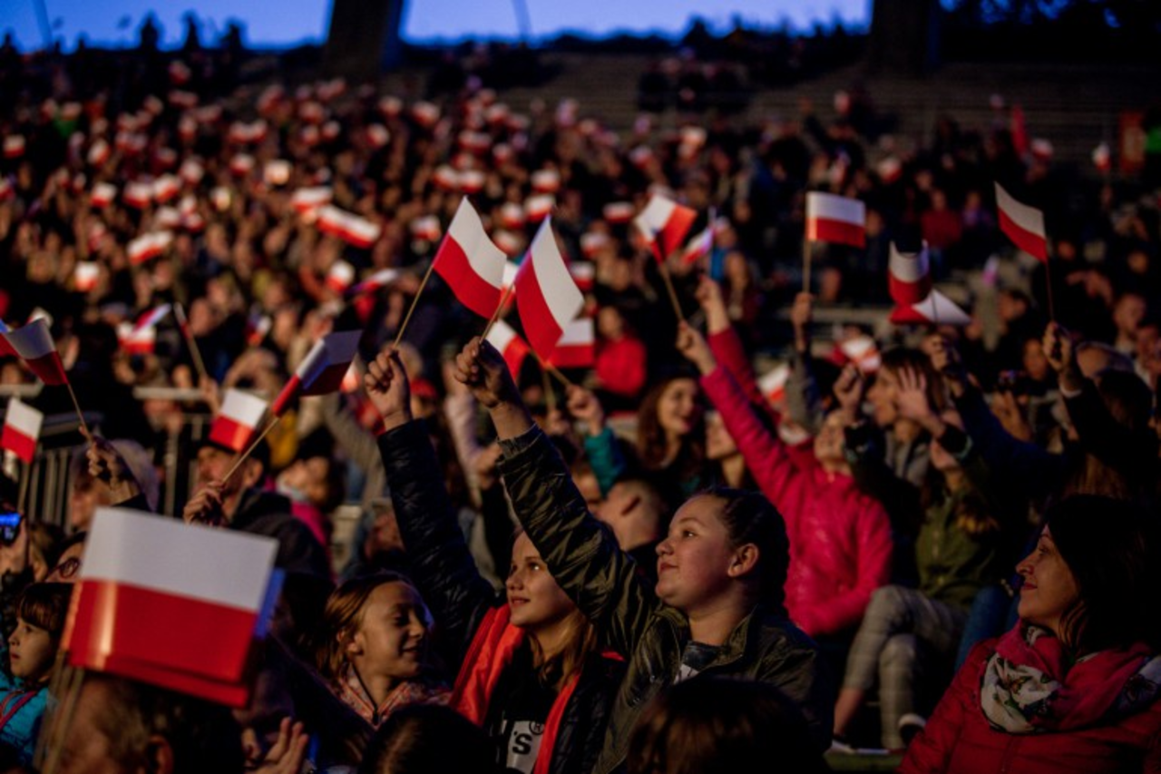 Biało-czerwone flagi powiewały dzisiaj na Kadzielni. I, mimo wrześniowego chłodnego wieczoru, dumnie machali nimi zarówno starsi jak i młodsi.