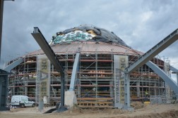 Rozpoczęły się też roboty drogowe oraz montaż instalacji sanitarnych. Zgodnie z planem, do końca października powinna być wykonana elewacja zewnętrzna i poszycie obu kopuł. W ramach inwestycji powstanie także 80 miejsc parkingowych.