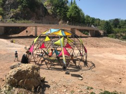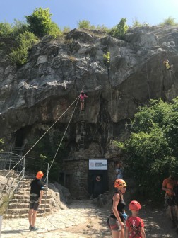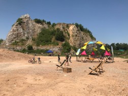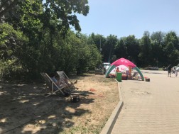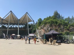 Ale nie tylko. Oblegana jest też ścianka wspinaczkowa, do której ustawia się długa kolejka chętnych. Ogromne zainteresowanie wzbudzają wiszące w powietrzu cztery hamaki, obok których co jakiś czas sunie śmiałek po linach tyrolki. Przed godziną trzynastą rozpoczęły się ekstremalne zawody rowerowe; one również - mimo panującego upału - zgromadziły wielu zawodników.