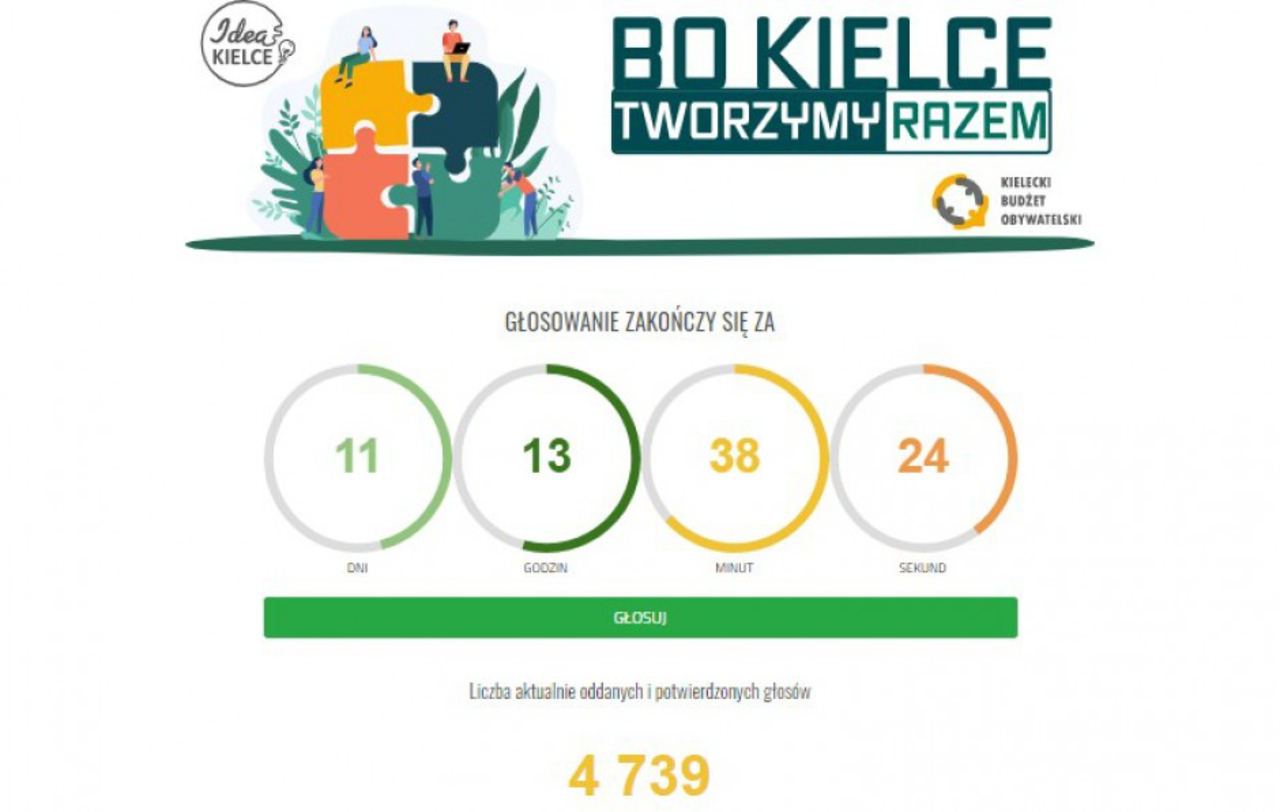 Na stronie Idea Kielce pojawił się licznik, dzięki któremu każdy może sprawdzić, ile osób oddało już głos w tegorocznej edycji Budżetu Obywatelskiego. Obecnie jest to ponad 4700 potwierdzonych formularzy.