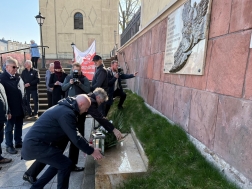 Kwiaty i znicze złożono między innymi przed Tablicą Epitafium na murze katedralnego Ogrójca.