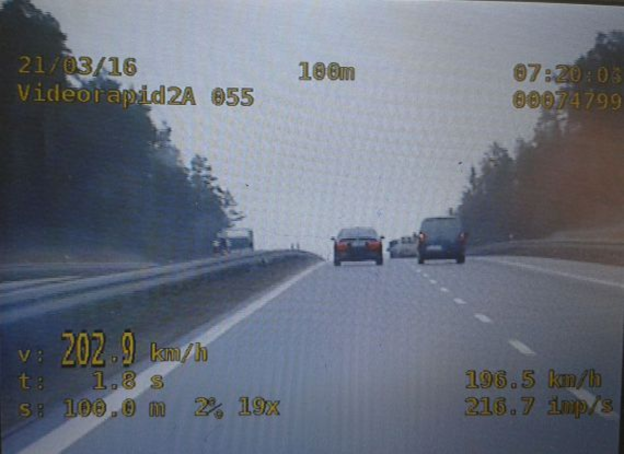 Dzisiaj z kolei funkcjonariusze zatrzymali mieszkańca Krakowa, którego nieodpowiedzialne zachowanie na drodze uwieczniła kamera nieoznakowanego radiowozu. Około godziny 7.20 na skarżyskim odcinku drogi ekspresowej policjanci zatrzymali do kontroli kierującego pojazdem marki BMW. 46-letni mieszkaniec Krakowa jadąc poruszał się z prędkością 202 km/h. W trakcie kontroli okazało się, że  mężczyzna stracił już prawo jazdy z powodu przekroczenia dozwolonej liczby punktów karnych.