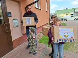 W paczkach znalazły się artykuły spożywcze i chemia gospodarstwa domowego. Do każdej paczki załączone zostały kartki z życzeniami świątecznymi przygotowane przez uczniów klasy 3B Szkoły Podstawowej nr 20 w Kielcach im. Natalii Machałowej.