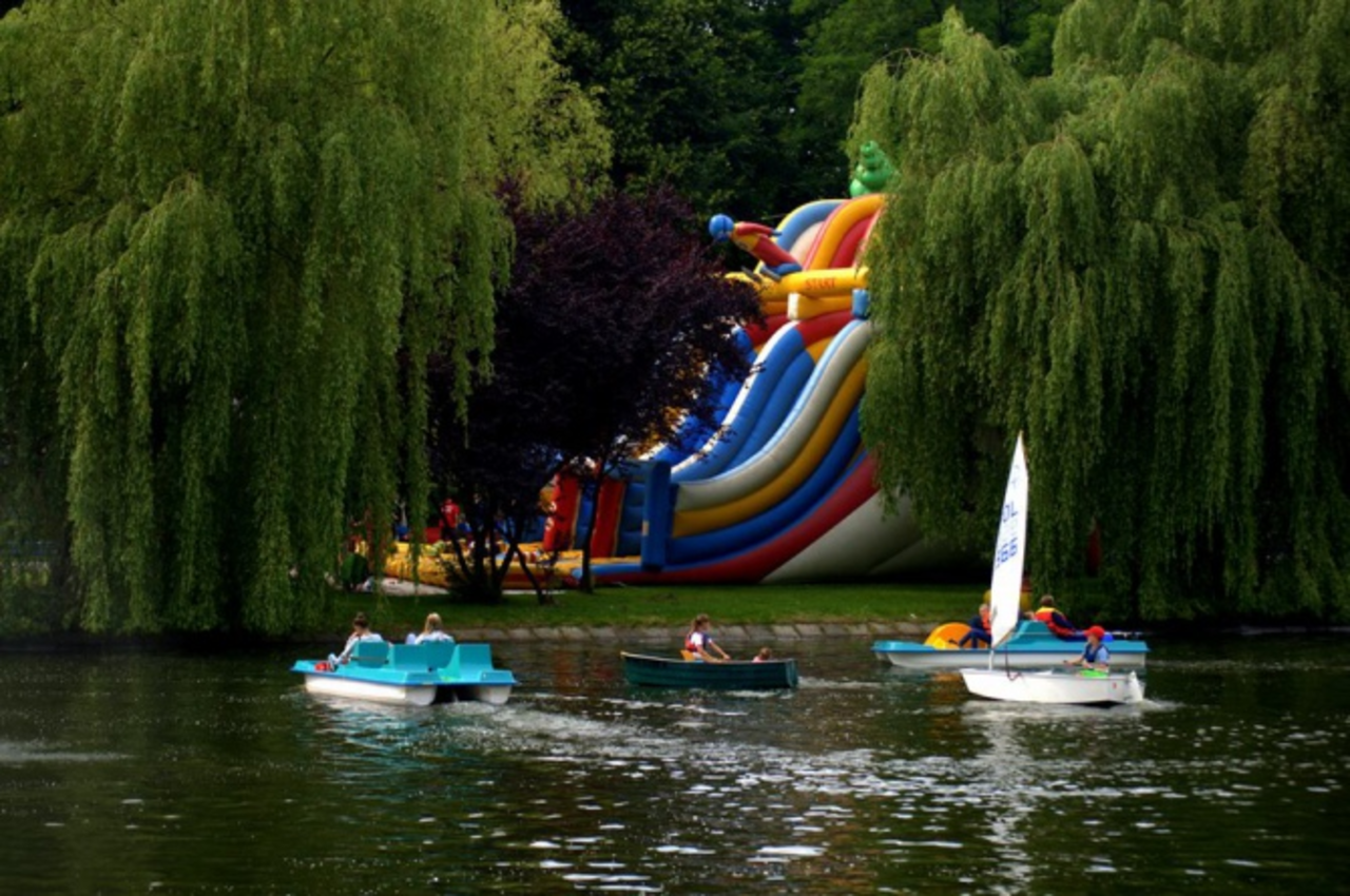 W okolicach stawu na weekend rozstawiono wiele dmuchanych pałaców, na których cały czas bawiła się masa dzieci. Oprócz tego najmłodsi chętnie swój czas spędzali w kulach wodnych czy skacząc na trampolinach. Całe rodziny korzystały natomiast z możliwości popływania po stawie na rowerkach wodnych czy kajakach.