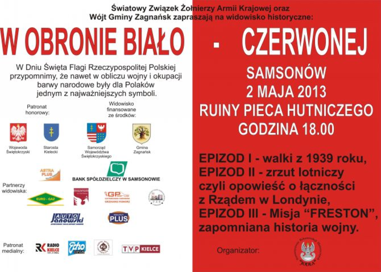 Dziś także Stowarzyszenie Rekonstrukcji Historycznych "JODŁA" zaprasza na widowisko pt. "W obronie Biało-Czerwonej”. Warto pofatygować się do Samsonowa, gdzie w ruinach Huty