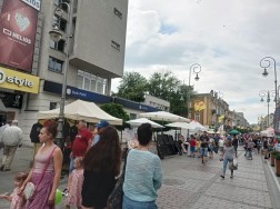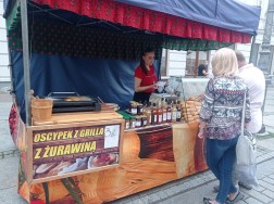 Wzdłuż deptaka ciągną się stragany, przy których możemy zakupić produkty rękodzielnicze, ale też wiele innych rzeczy (przykładowo, poduszki dostosowujące się do kształtu ciała, rozmaite rośliny, czy też kosmetyki) i pyszności. Jak co roku, dużym zainteresowaniem cieszą się oscypki – te z grilla, z żurawiną, jak i zwykłe. Przy jednym ze stoisk ustawiła się całkiem pokaźna kolejka chętnych na skosztowanie góralskich przysmaków.
