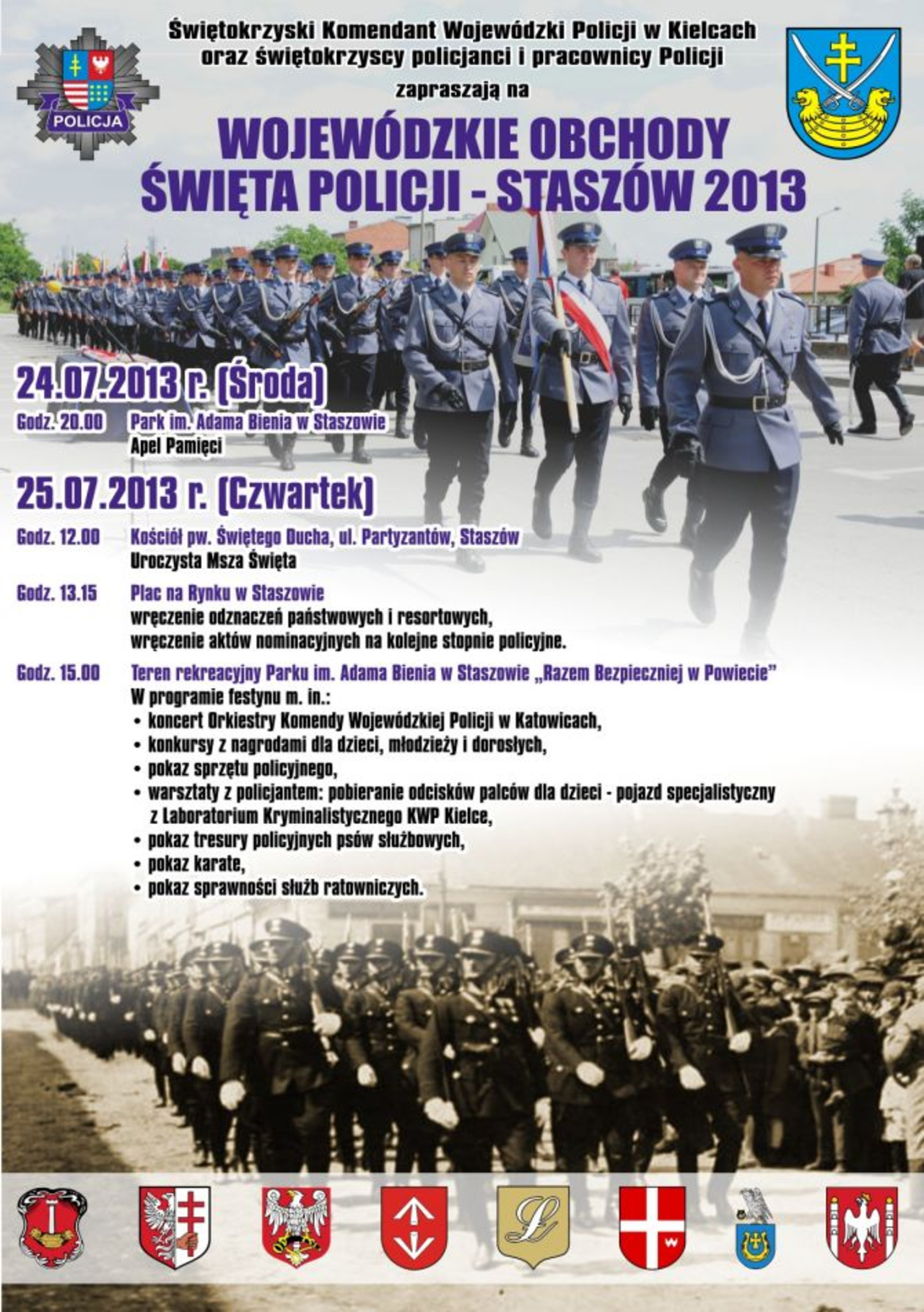 Uroczystości zaczną się o godz. 20-tej Apelem Pamięci w Parku im. Adama Bienia. Kolejne obchody zaplanowano na czwartek. W południe w kościele pw. Ducha Świętego zacznie się uroczysta msza święta. Po niej uczestnicy obchodów przejdą na staszowski Rynek, gdzie zasłużeni funkcjonariusze odbiorą odznaczenia państwowe i resortowe oraz akty nominacyjne na kolejne stopnie policyjne.