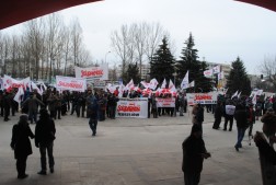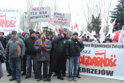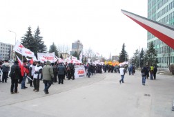 We wtorek rano pod Świętokrzyskim Urzędem Wojewódzkim w Kielcach odbyła się demonstracja związkowców, którzy w ten sposób solidaryzują się z pracownikami Śląska i Zagłębia. Ci już podjęli decyzję o strajku generalnym. Protestujący w Kielcach wystosowali do rządu apel m.in. w sprawie zaniechania zmian w Kodeksie Pracy polegających na wydłużeniu czasu pracy i obniżeniu zarobków pracowniczych.