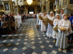 Podczas mszy świętej władze województwa przekazały biskupowi sandomierskiemu tradycyjne dary z tegorocznych zbiorów. Po liturgii ksiądz biskup poświęcił wieńce ze wszystkich powiatów naszego regionu. Następnie w kolorowym korowodzie uczestnicy dożynek przemaszerowali przez Sandomierz na miejsce uroczystości.