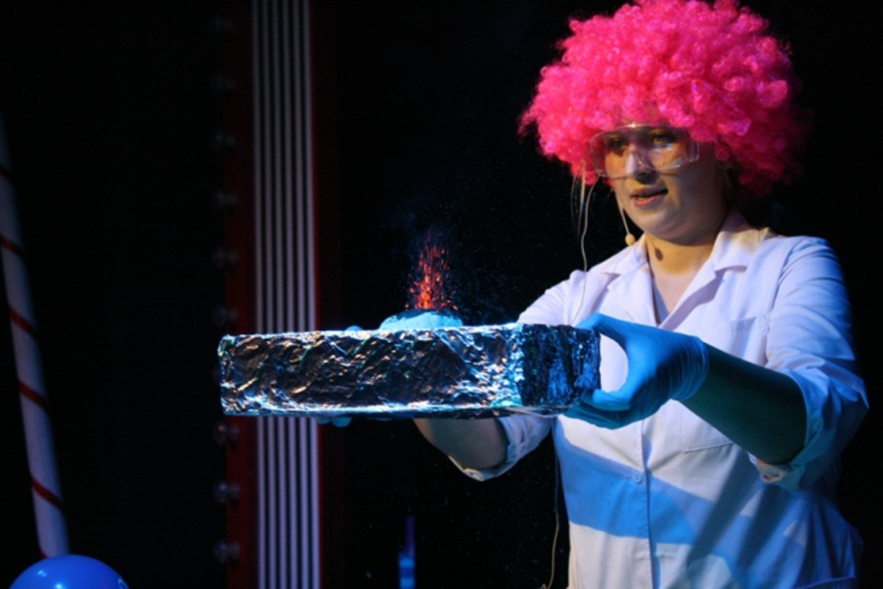 W pokazie „Szalonego chemika” Małgorzata Młynik z Wodociągów Kieleckich pokazała dzieciom przeróżne chemiczne sztuczki. Najmłodsi dowiedzieli się na przykład, że atrament nie barwi gorącej wody a zimną już tak. Zobaczyli także reakcje chemiczne, podczas których złączone dwie różne ciecze zabarwiają się na różowo czy malinowo. Młynik pokazała też jak zrobić pastę dla zębów dla… słonia! To był oczywiście żart, jednak powstałe słupy kolorowej piany faktycznie przypominały wyciśniętą z tubki pastę.