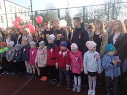 Podczas uroczystości uczniowie szkoły i przedszkolaki przedstawiły program artystyczny, po którym o godzinie 11.11 wszyscy wspólnie odśpiewali hymn. Następnie młodzież utworzyła z białych i czerwonych kartek flagę narodową, a dzieci wypuściły w powietrze balony w barwach narodowych napełnione helem.
