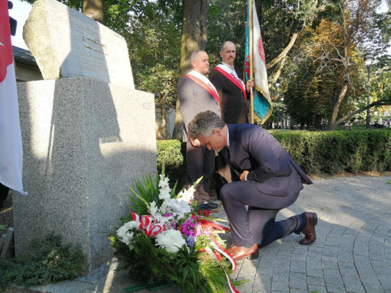 Kwiaty pod obeliskiem "Solidarności" na placu Stefana Żeromskiego oprócz Waldemara Bartosza złożyli wiceminister spraw zagranicznych Piotr Wawrzyk, senator Krzysztof Słoń, przewodniczący sejmiku województwa Andrzej Bętkowski, wicewojewoda Bartłomiej Dorywalski, członkowie organizacji społecznych.
