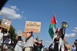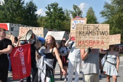 Podczas incydentu, Radomir M. i Aleksandra S. głosili hasła „Free Palestine”. Wczoraj (4 września) przed komisariatem policji przy ul. Wesołej w Kielcach odbył się protest aktywistów przeciwko zatrzymaniu wspomnianej dwójki. Podobna akcja miała miejsce dziś (5 września) przy Targach Kielce. Zdjęcia z propalestyńskiego protestu w galerii poniżej.