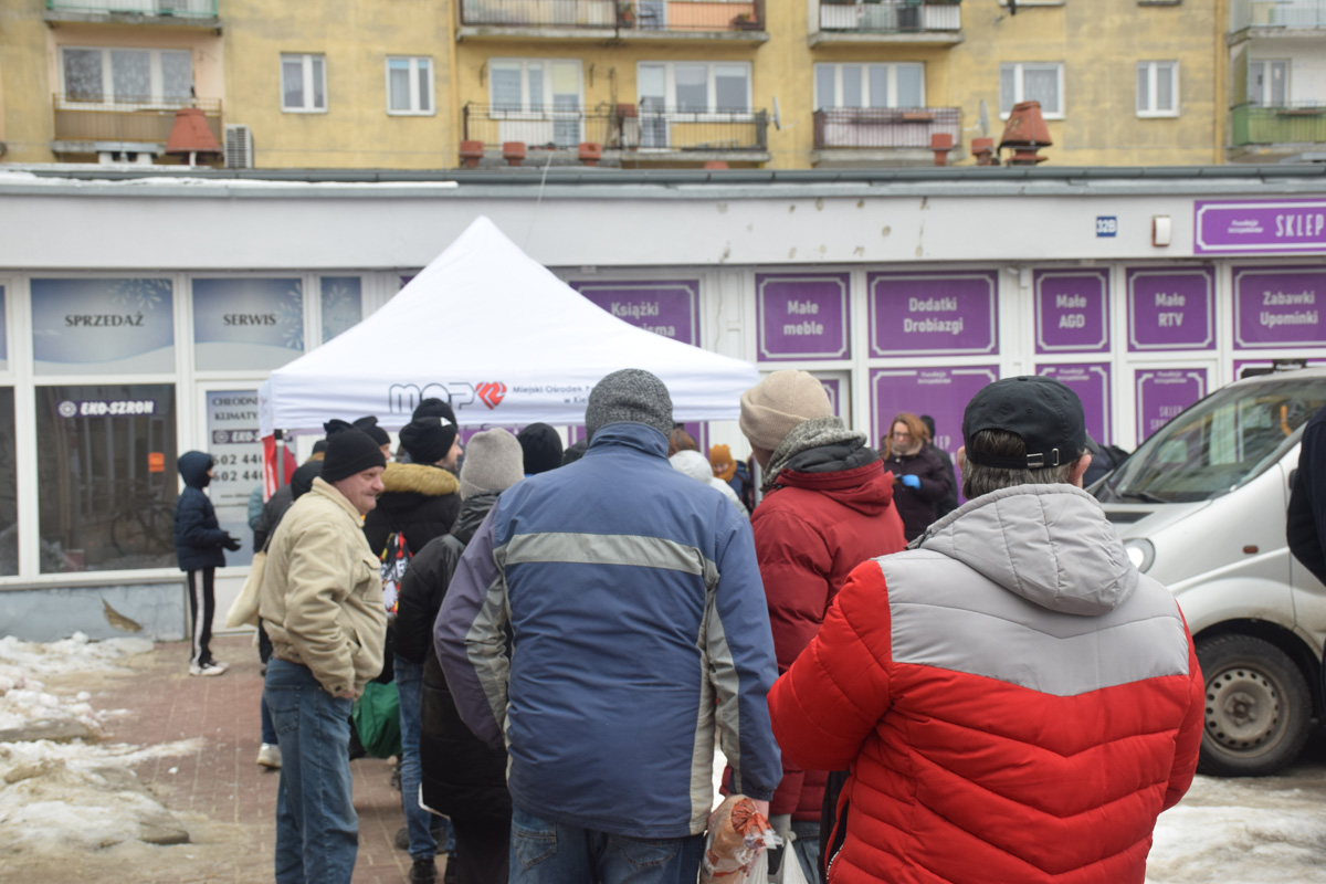 – To inicjatywa, która zrodziła się z potrzeby serca. Mamy taką temperaturę na dworze, jaką mamy. Wiemy, że na tym osiedlu jest sporo starszych, potrzebujących osób, dla których tak oczywista rzecz jak ciepły posiłek może być dużym wyzwaniem. Dlatego wychodzimy do nich bezpośrednio, żeby zaoferować im ciepły posiłek we współpracy z Centrum Integracji Społecznej i Bankiem Żywności, a dokładnie z kuchnią społeczną Banku Żywności. Możemy to dzisiaj zorganizować. Dostaliśmy ciepłą zupę – kapuśniak, kurczaka, kanapki, jest ciepła herbata i kawa, więc myślę, że każdy znajdzie coś dla siebie. Chcemy dotrzeć do jak największej liczby osób. Jeżeli zobaczymy, że ta inicjatywa rzeczywiście jest potrzebna i się sprawdza, to na pewno nie będzie to ostatni raz – wyjaśnia Paulina Łodejska, pracownik socjalny Miejskiego Ośrodka Pomocy Rodzinie w Kielcach, rejon „Za Torami”.