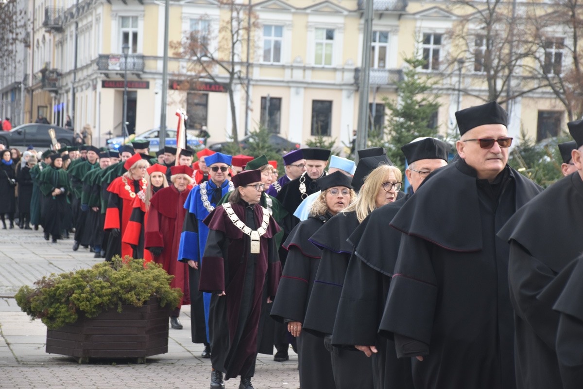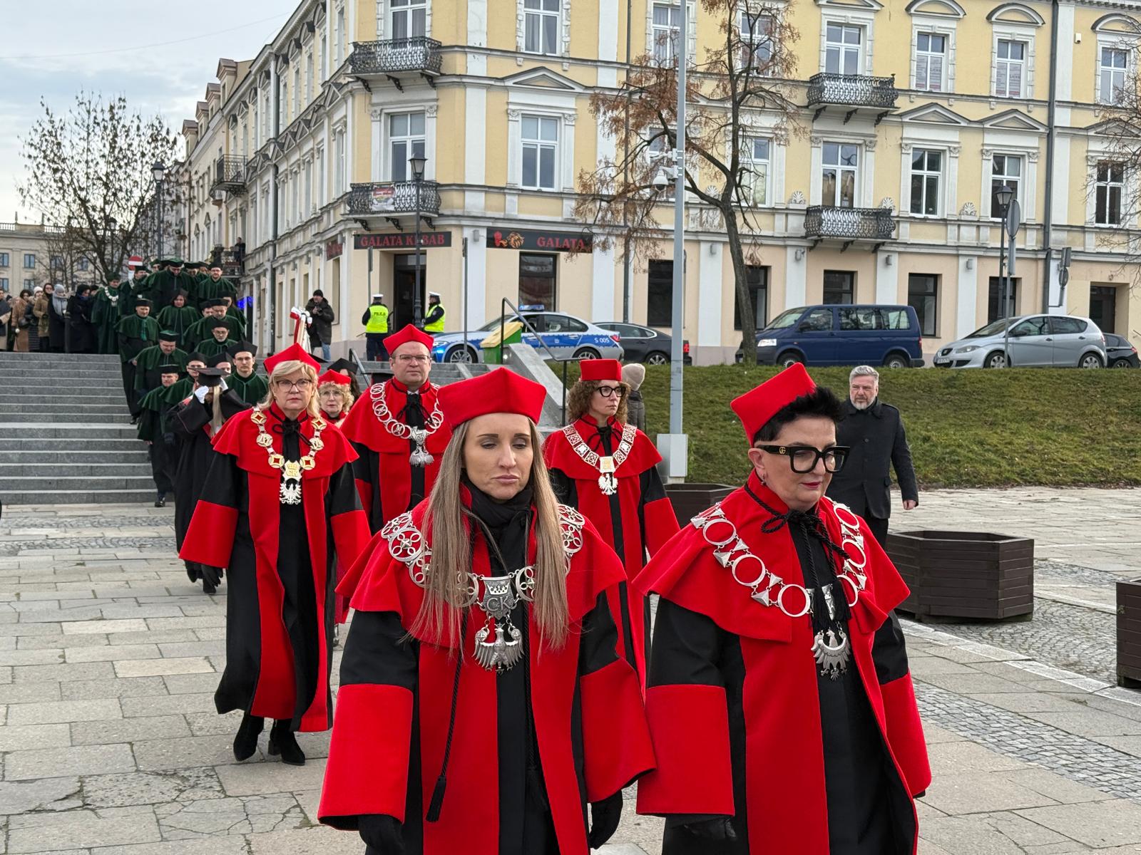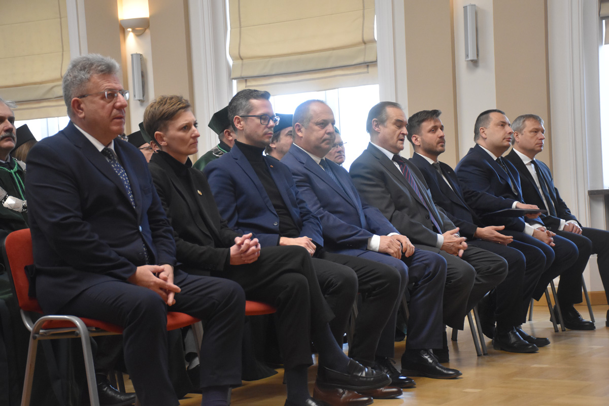W uroczystym posiedzeniu senatów obydwu uczelni, które odbyło się w Auli Magna Uniwersytetu Jana Kochanowskiego w Kielcach, poza środowiskiem akademickim wzięli udział przedstawiciele Głównego Urzędu Miar, a także m.in. prezydent Kielc Agata Wojda oraz wojewoda Józef Bryk.