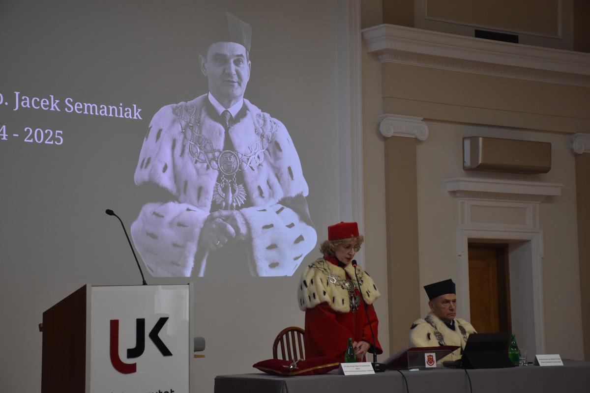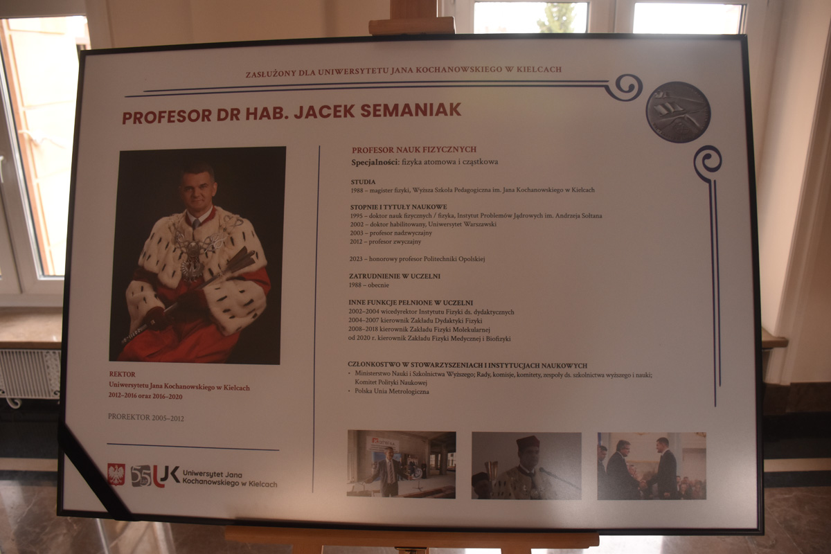 Środowisko akademickie oddało w ten sposób hołd zmarłemu w ubiegłym tygodniu profesorowi Jackowi Semaniakowi – prezesowi Głównego Urzędu Miar, a także wieloletniemu rektorowi Uniwersytetu Jana Kochanowskiego.
