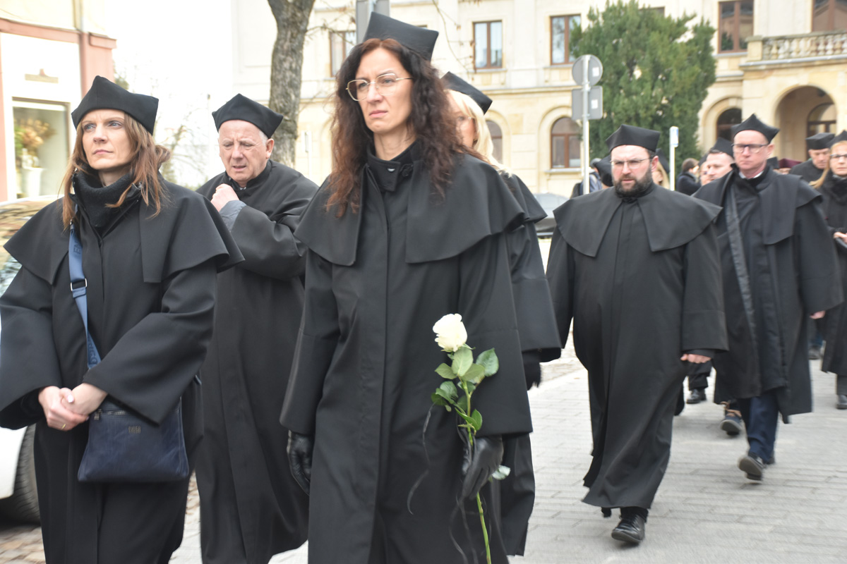 – Te ostatnie dni były czasem, w którym przychodziło nam do głowy bardzo wiele myśli i w którym wypowiadaliśmy wiele słów nie tylko ja, ale także moi współpracownicy oraz całe środowisko akademickie. Każdy z nas zapamiętał prezesa przede wszystkim jako wspaniałego, dobrego człowieka. Nie tyle jako tego, kim był, lecz jako tego, jakim był dla ludzi. Każdemu okazywał szacunek i każdemu, kto się do niego zwrócił, udzielał pomocy. Pamiętam, jak podczas jednego z naszych spotkań w szpitalu powiedział mi, że każdego dnia trzeba czynić dobro. Z tą myślą zostaję na resztę swojego życia, biorąc z niego naprawdę przykład, ponieważ był dla mnie, i dla wielu z nas, prawdziwym autorytetem. Sposób, w jaki dziś go żegnamy – uroczyste posiedzenie senatów połączonych uczelni, następnie Msza Święta i przemarsz na cmentarz w asyście wojskowej oraz przy udziale orkiestry wojskowej – pokazuje, jak wielki szacunek składa mu dziś państwo polskie. Profesor Jacek Semaniak naprawdę zasłużył na naszą cześć i pamięć, pozostając w naszych sercach na zawsze – wspomina.
