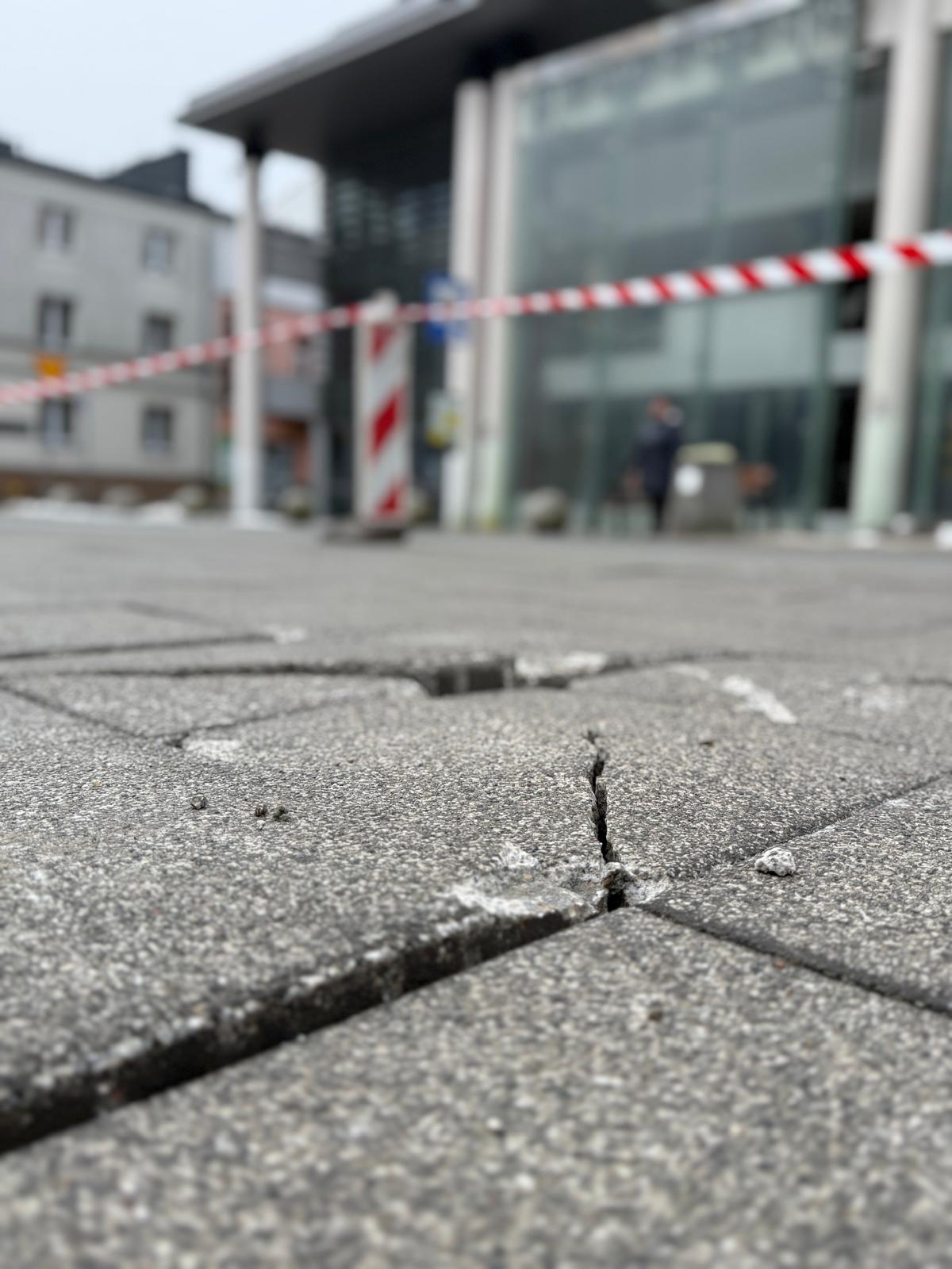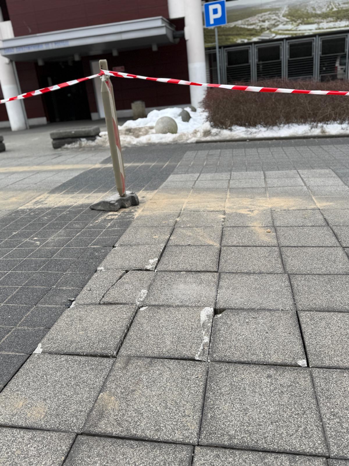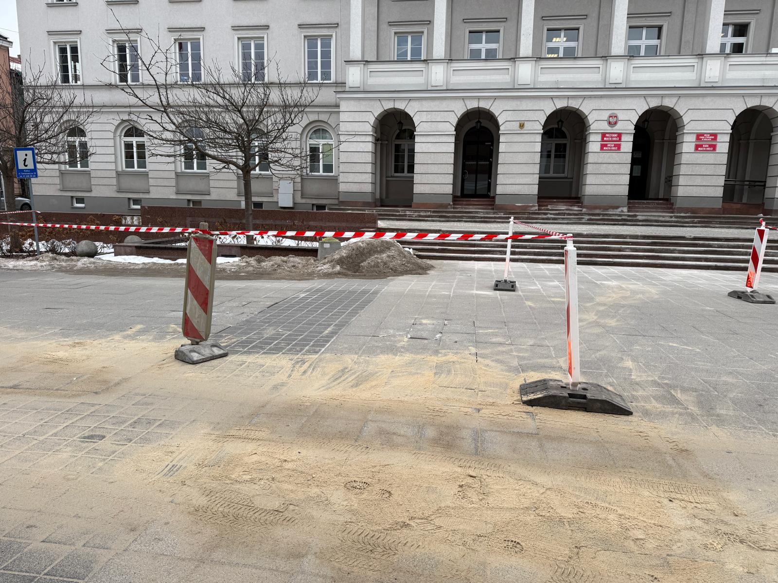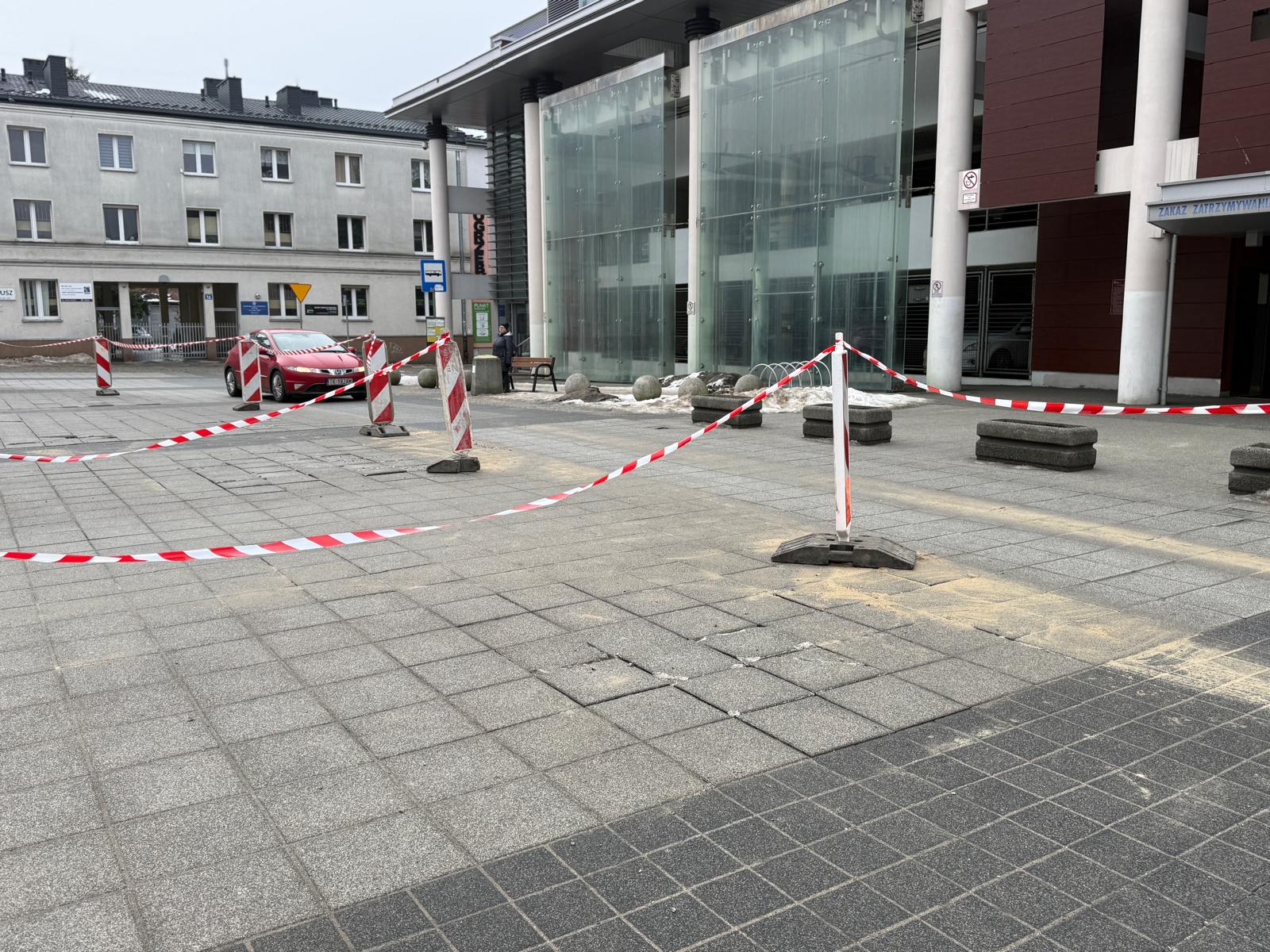 Naprawa uszkodzonej nawierzchni placu będzie możliwa dopiero przy sprzyjających warunkach atmosferycznych.
