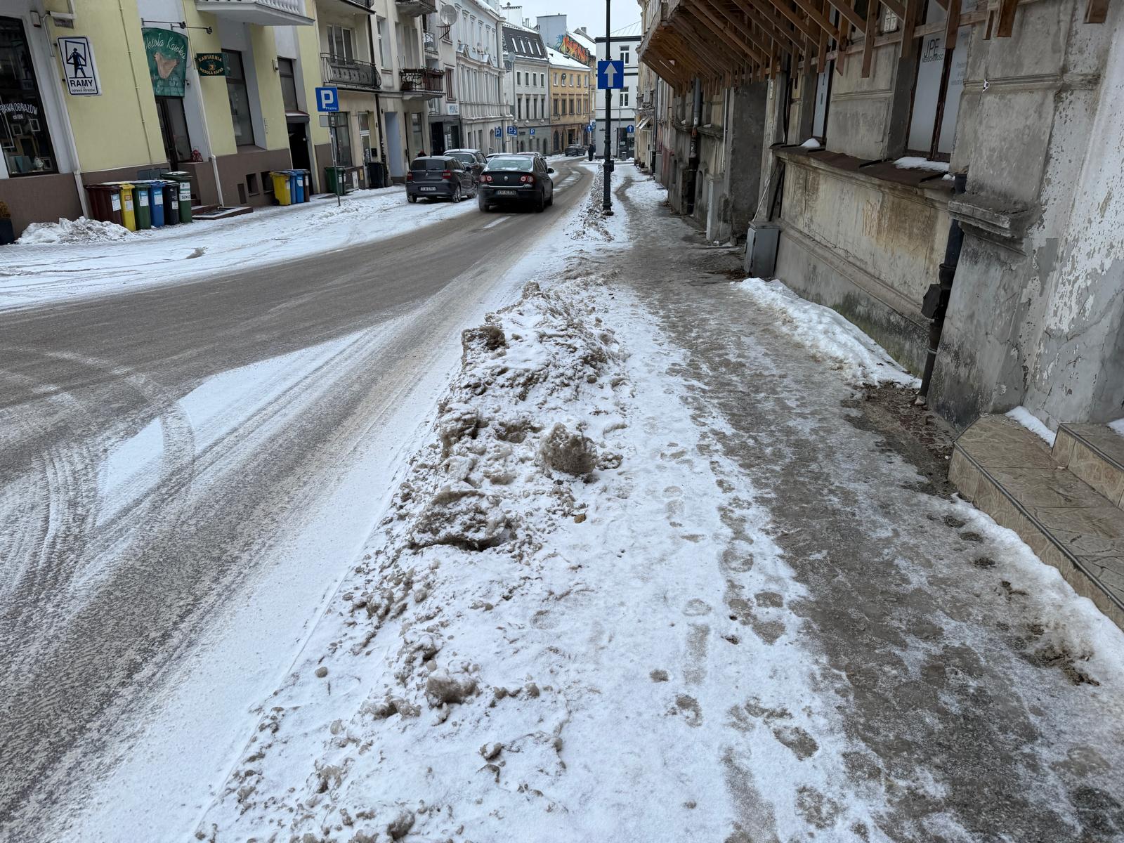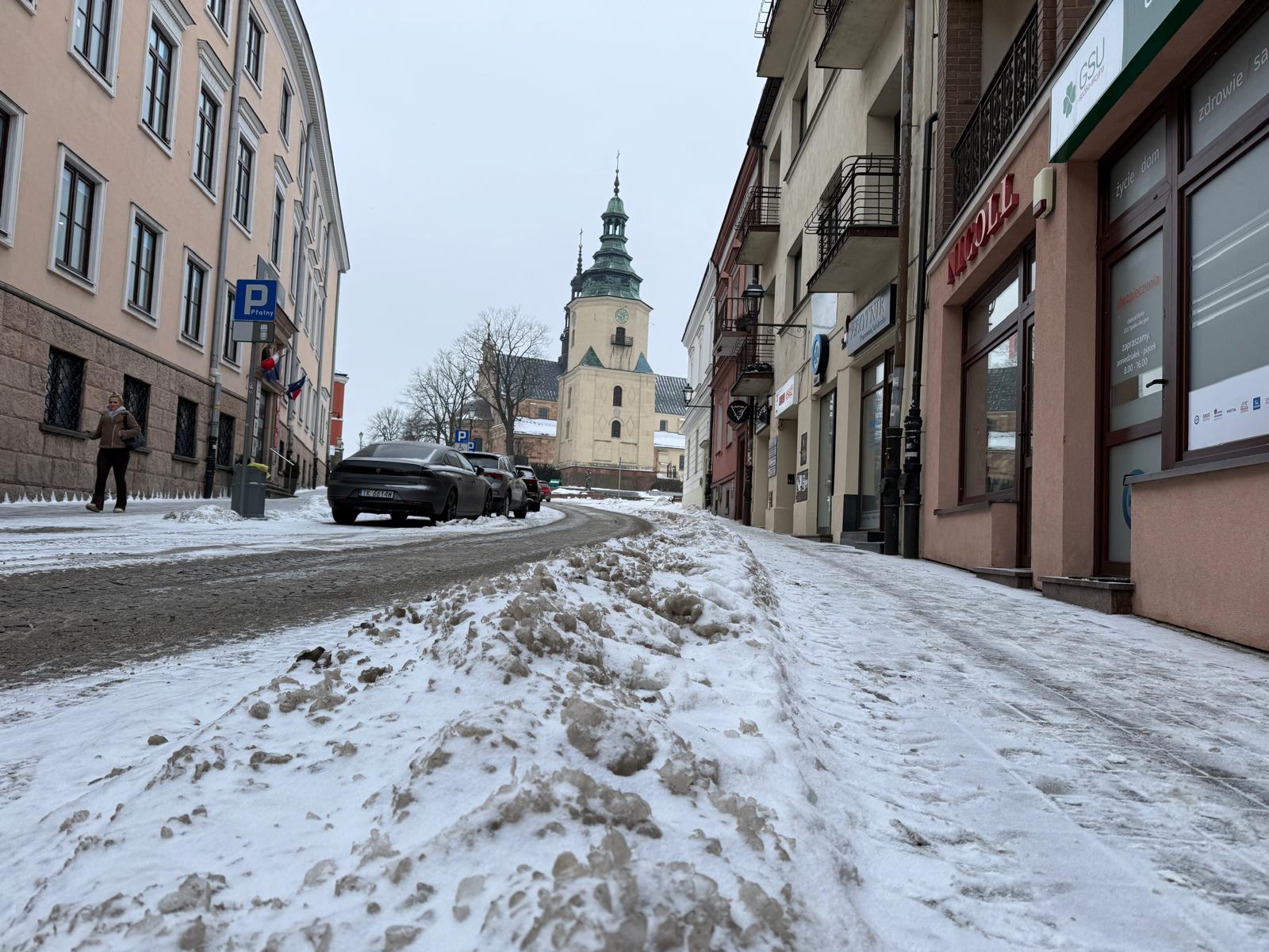 Hałdy starego, zmarzniętego śniegu zalegają na chodnikach. Mieszkańcy Kielc skarżą się na trudne warunki do przemieszczania się. RCB ostrzega: będzie ślisko.